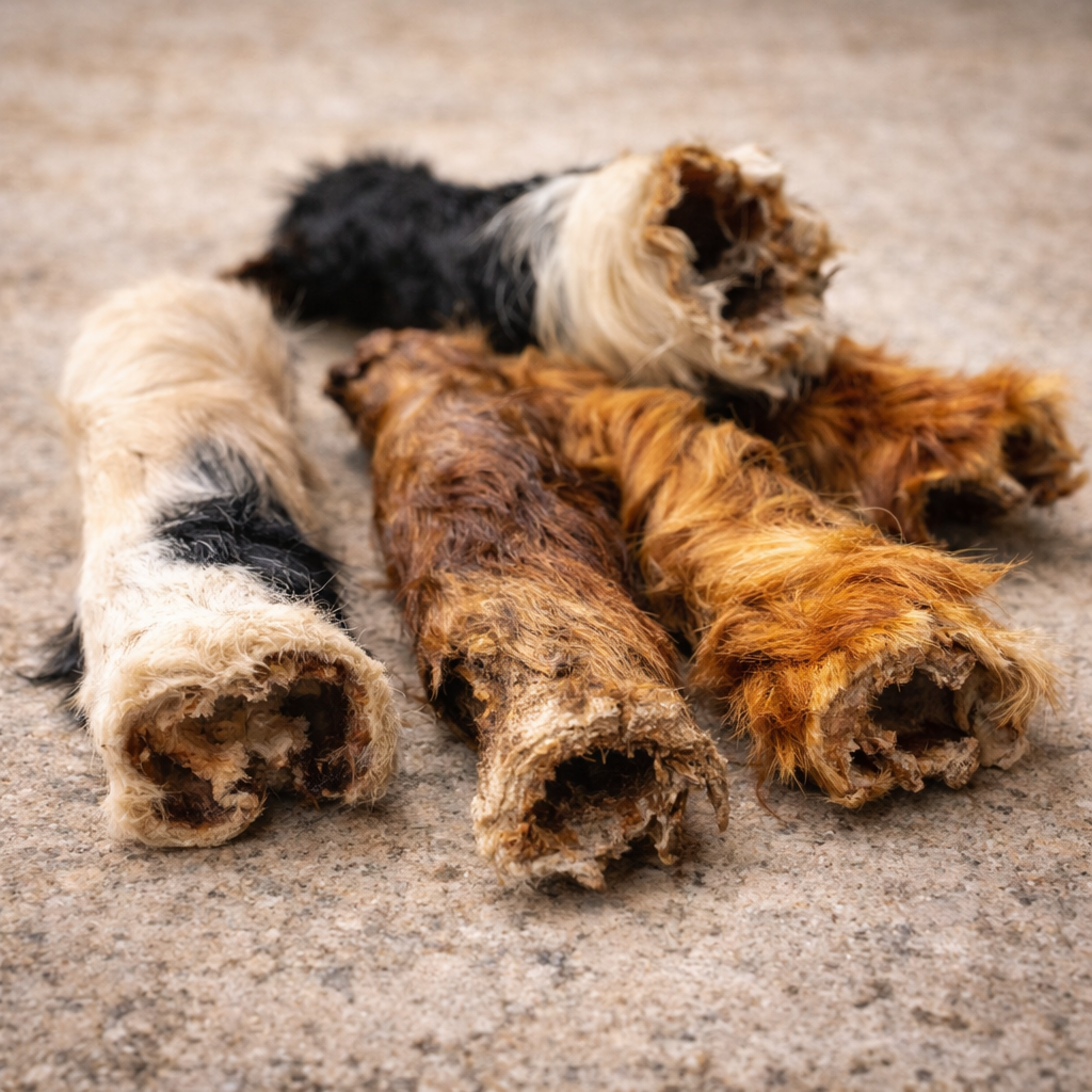 Les friandises avec poils imitent l’alimentation originelle du chien. En plus de stimuler la digestion, elles apportent fibres & minéraux naturellement, tout en réveillant son instinct de carnivore 🐺✨.