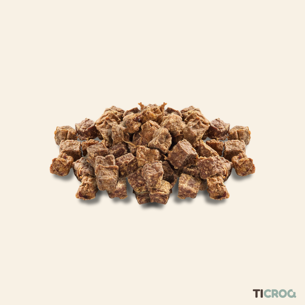 Faites plaisir à votre compagnon avec des friandises naturelles et saines, sélectionnées avec soin pour leur qualité et leurs bienfaits nutritionnels. Chez Ticroq, nous vous proposons une large gamme de friandises adaptées aux besoins de tous les chiens, sans additifs, sans conservateurs et sans céréales pour une digestion optimale.