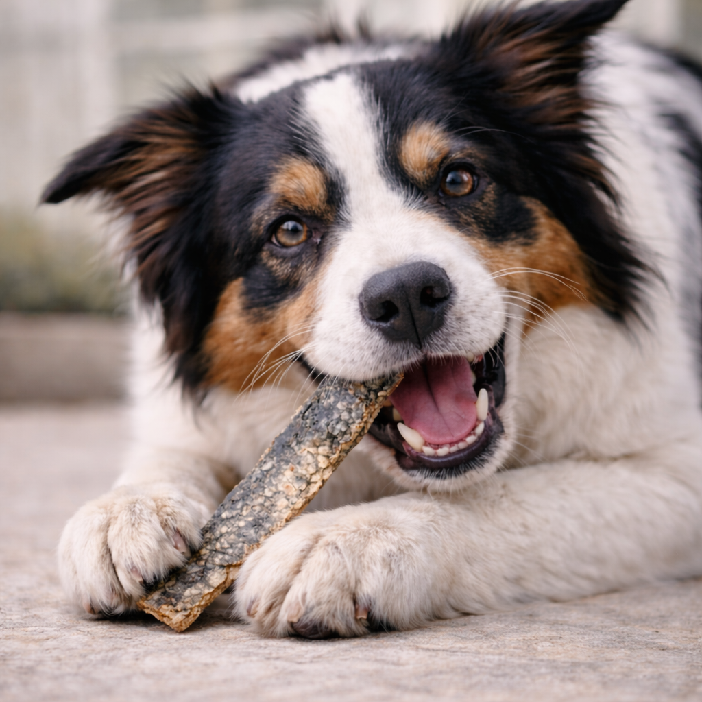 La texture mi-ferme est idéale pour une mastication saine, qui aide à nettoyer les dents, occupe ton compagnon et apaise ses mùchoires, sans alourdir sa digestion.